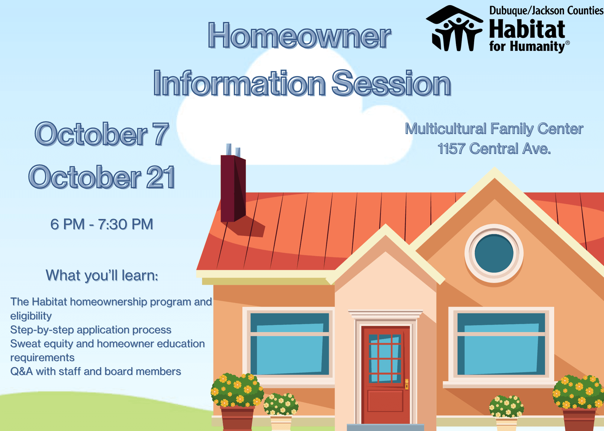 Thinking about homeownership? Join us for a Habitat Homeowner Information Session to learn how to apply!